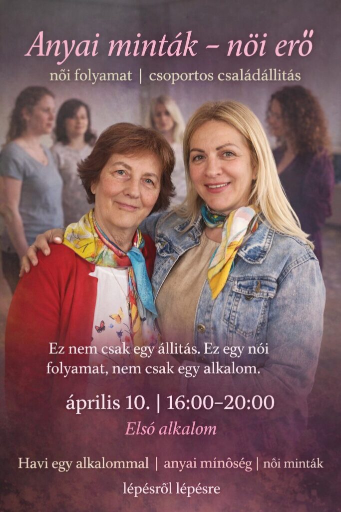 Van, amit észre sem veszünk, mégis hat ránk. Mondatok, érzések, sorsok… amiket nőként viszünk tovább. Anyák napjához közeledve különösen erősen megmozdul bennünk: ✨ a kapcsolat az anyánkkal ✨ az, amit kaptunk – és amit nem ✨ és az a kérdés is: mit adok tovább? Ez az alkalom egy tavaszi megújulás kezdete. Egy tér, ahol ránézhetsz arra, ami mögötted áll, és kapcsolódhatsz ahhoz az erőhöz, ami benned van. Csoportos családállításban dolgozunk, az anyai minőséggel és a női mintákkal. Nem kell sietni. Nem kell „megoldani mindent egyszerre”. Ez egy olyan folyamat, ami havi egy alkalommal mélyül, lépésről lépésre. Lehet jönni egyszer is. És lehet maradni egy hosszabb útra.